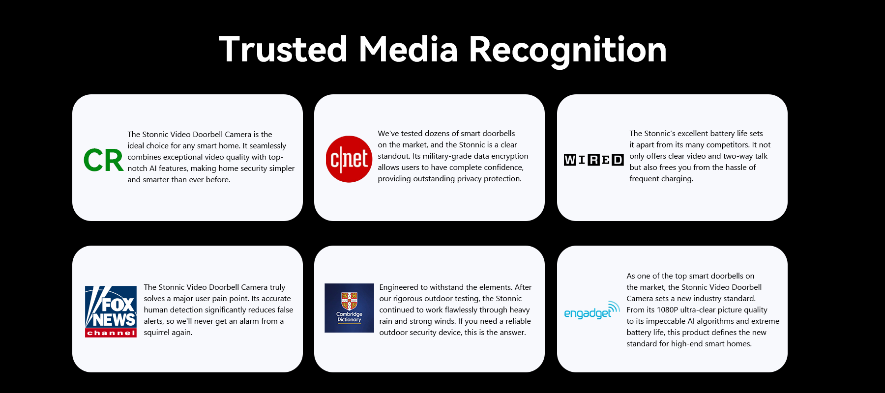 The Stonnic Video Doorbell Camera was the result. With advanced AI detection and HD night vision, it ensures your home is reliably protected, day and night. Stonnic's core mission is to never let you down and to always keep your family safe.
